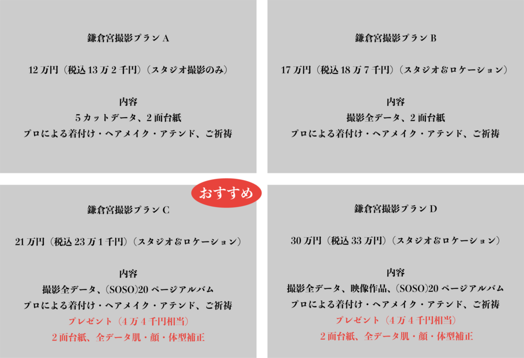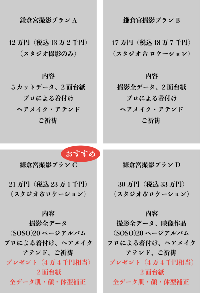 鎌倉宮成人撮影プランの特徴
